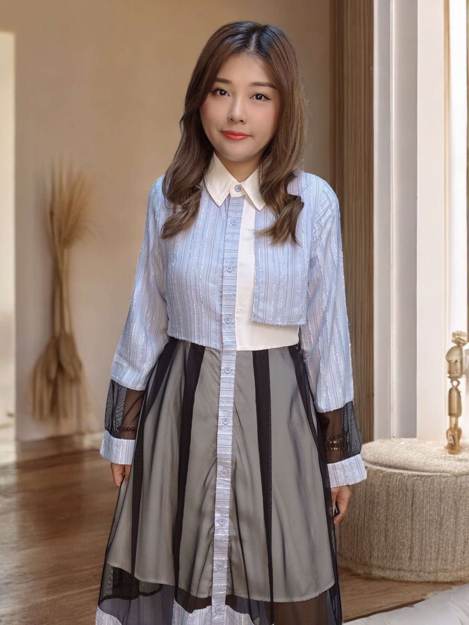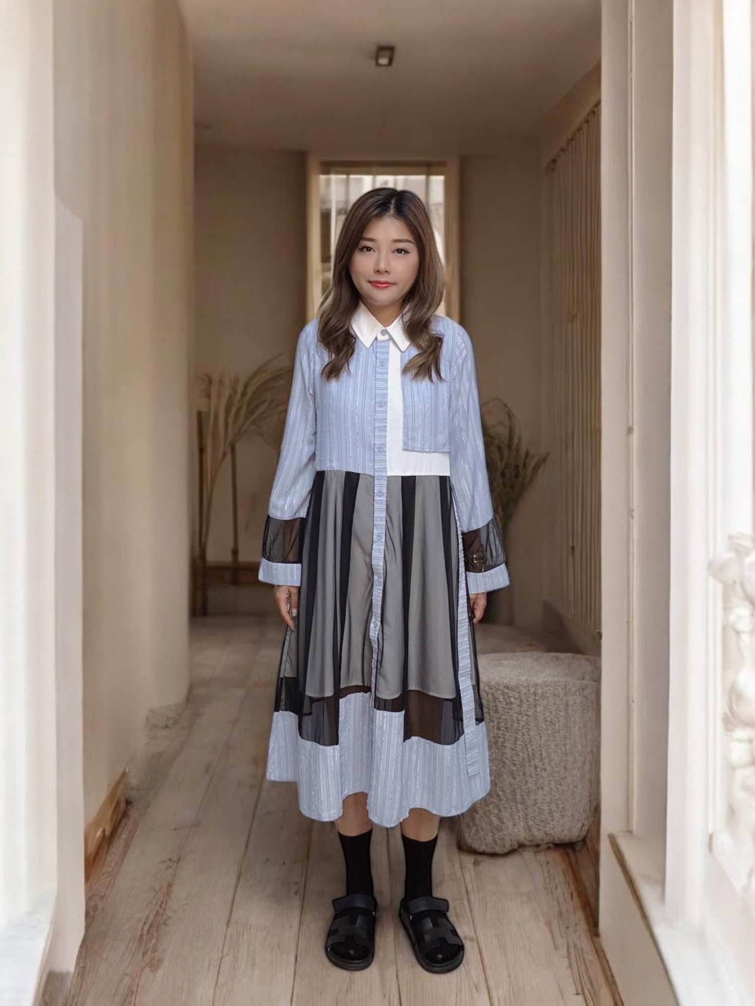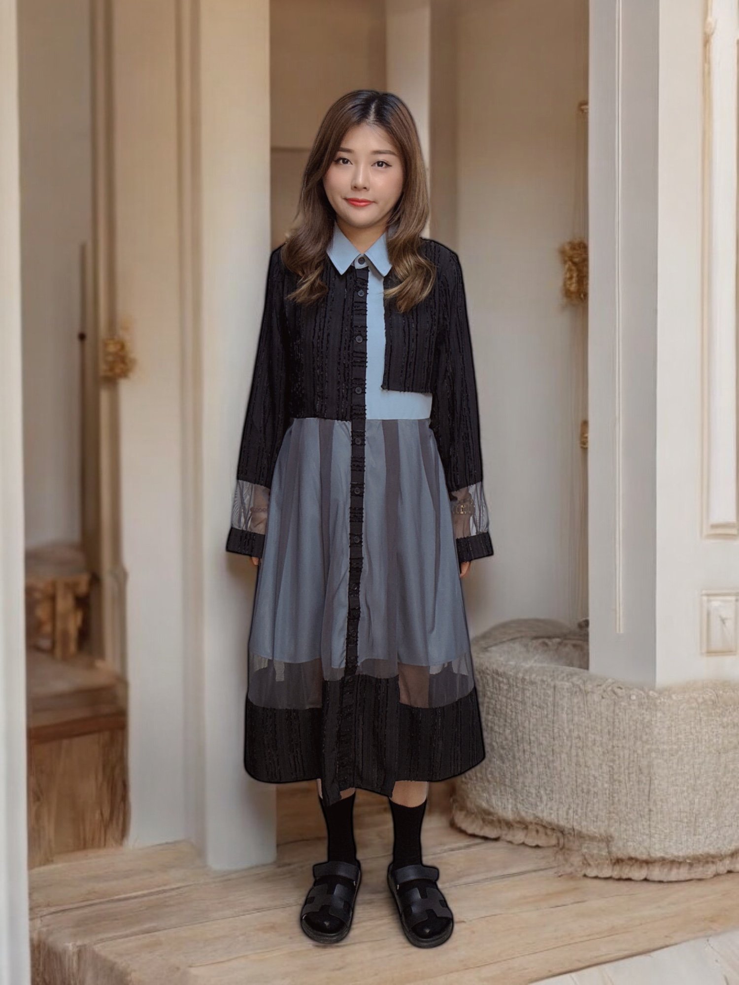 103459 BS452 獨家款 重工剪裁拼布設計連身裙